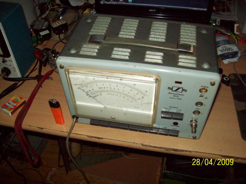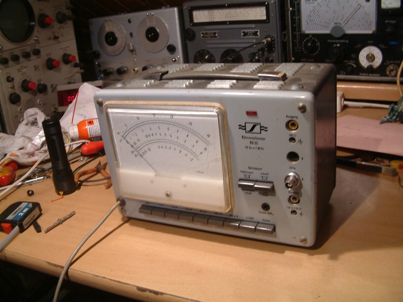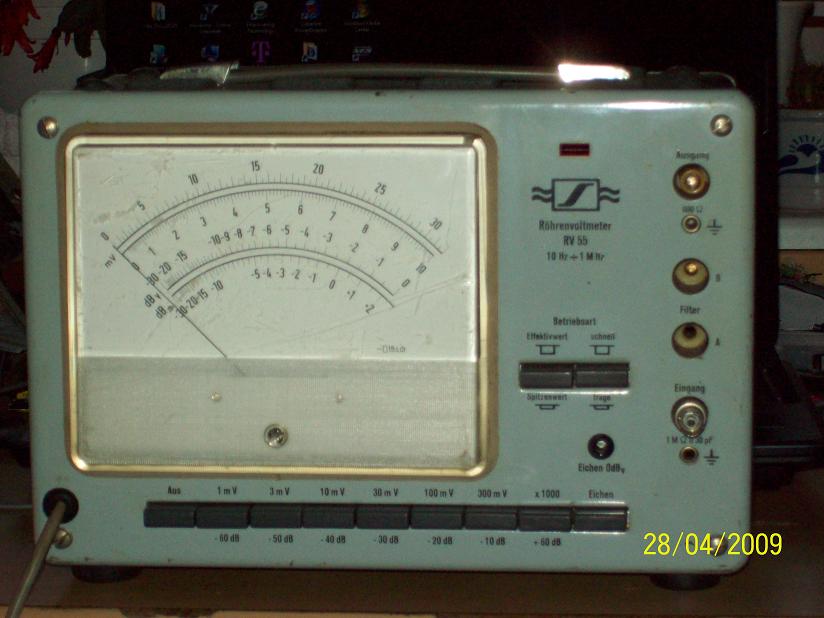hier mein altes Sennheiser RV55. Hergestellt wurde dieses Gerät jedoch von der Fa Grundig. Ein AC-Röhren-Millivoltmeter, mit sehr weitem Spannungsbereich.
