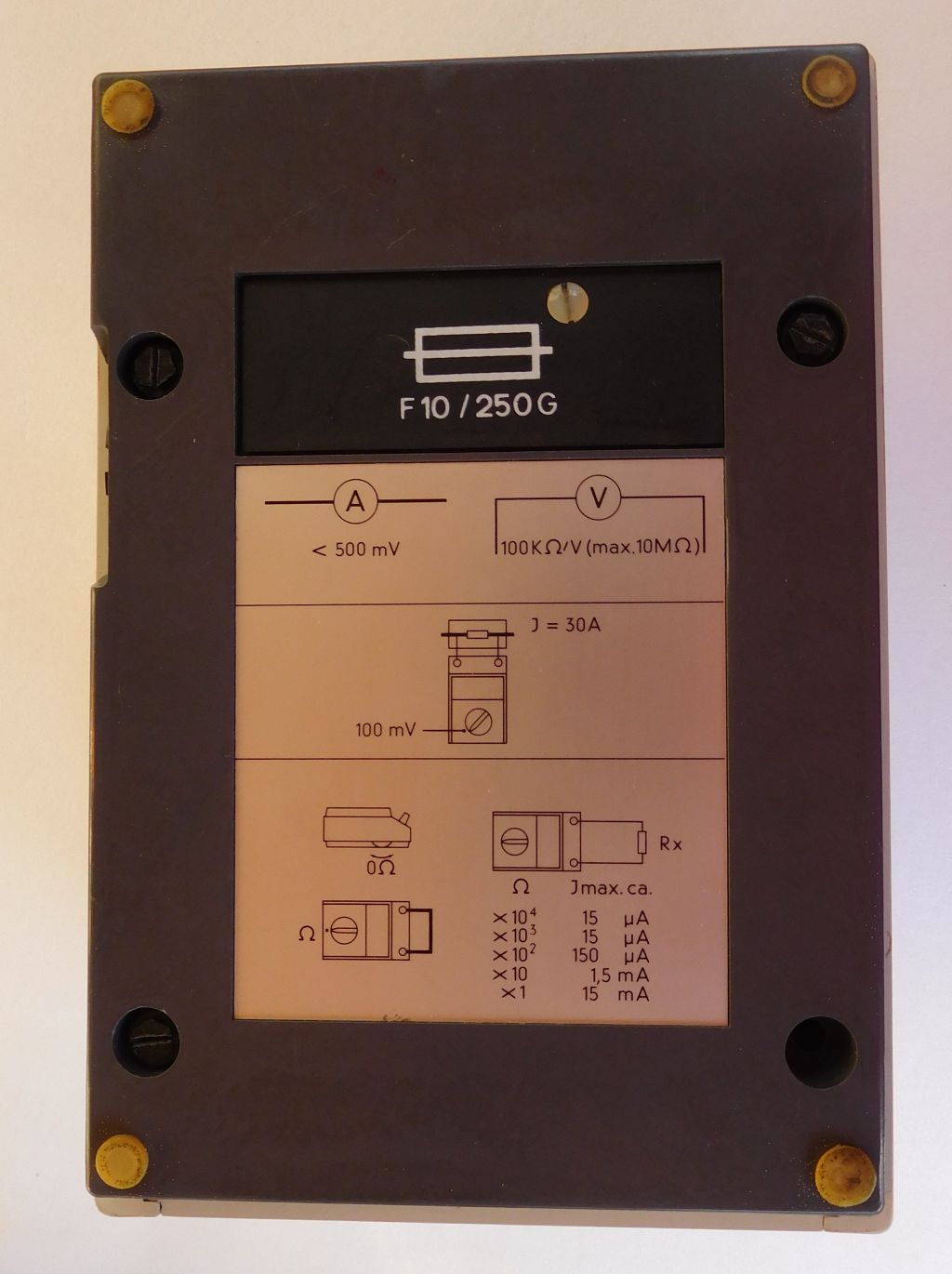 Ich bin mittlerweile auch (ein wenig) fündig geworden, was das dritte Gerät angeht. Hier braucht man eine 1,5V Batterie (AA) für Messungen bis 100Ohm sowie eine 15V Batterie (10F15) für bis 10kOhm. Das Konzernlogo auf dem Gerät soll von vor 1973 stammen. Auch von diesem Gerät gibt es noch unterschiedliche Typen. Mal sehen was ich da noch rausfinde.