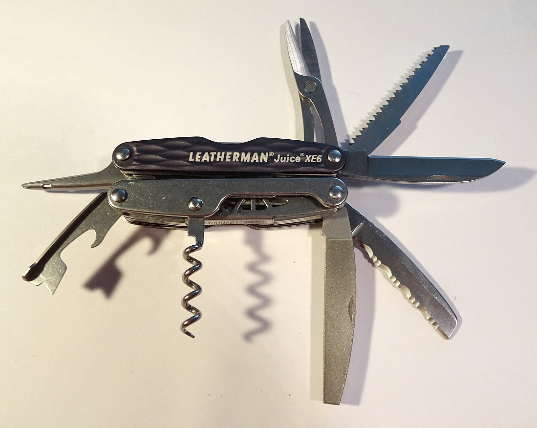 hier die Konkurrenz zu der Schweizer Firma Victorinox, das Leatherman Juice XE6 aus den USA.