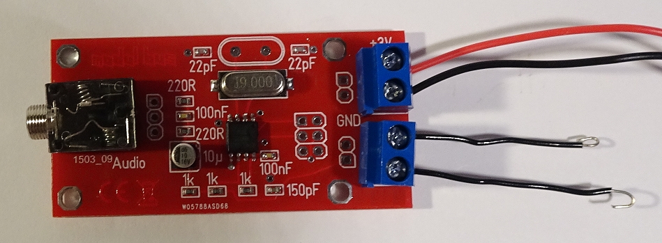 Die Modulation ist recht sauber. Das Gerät zieht bei 3 Volt Versorgungsspannung nur 5 mA, (3 V x 0,006 A = 0,018 Watt).