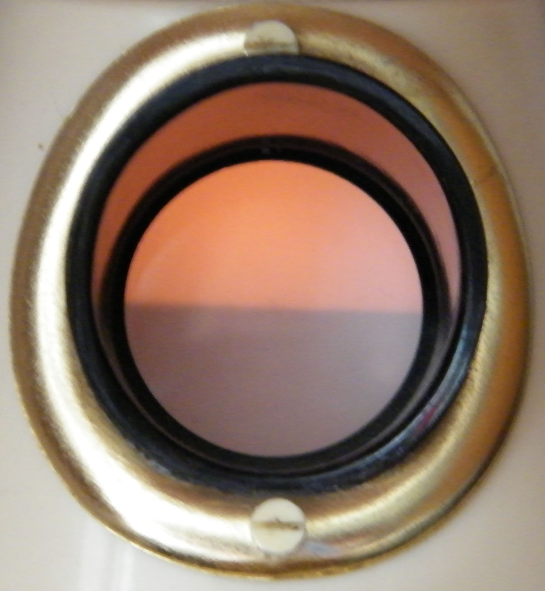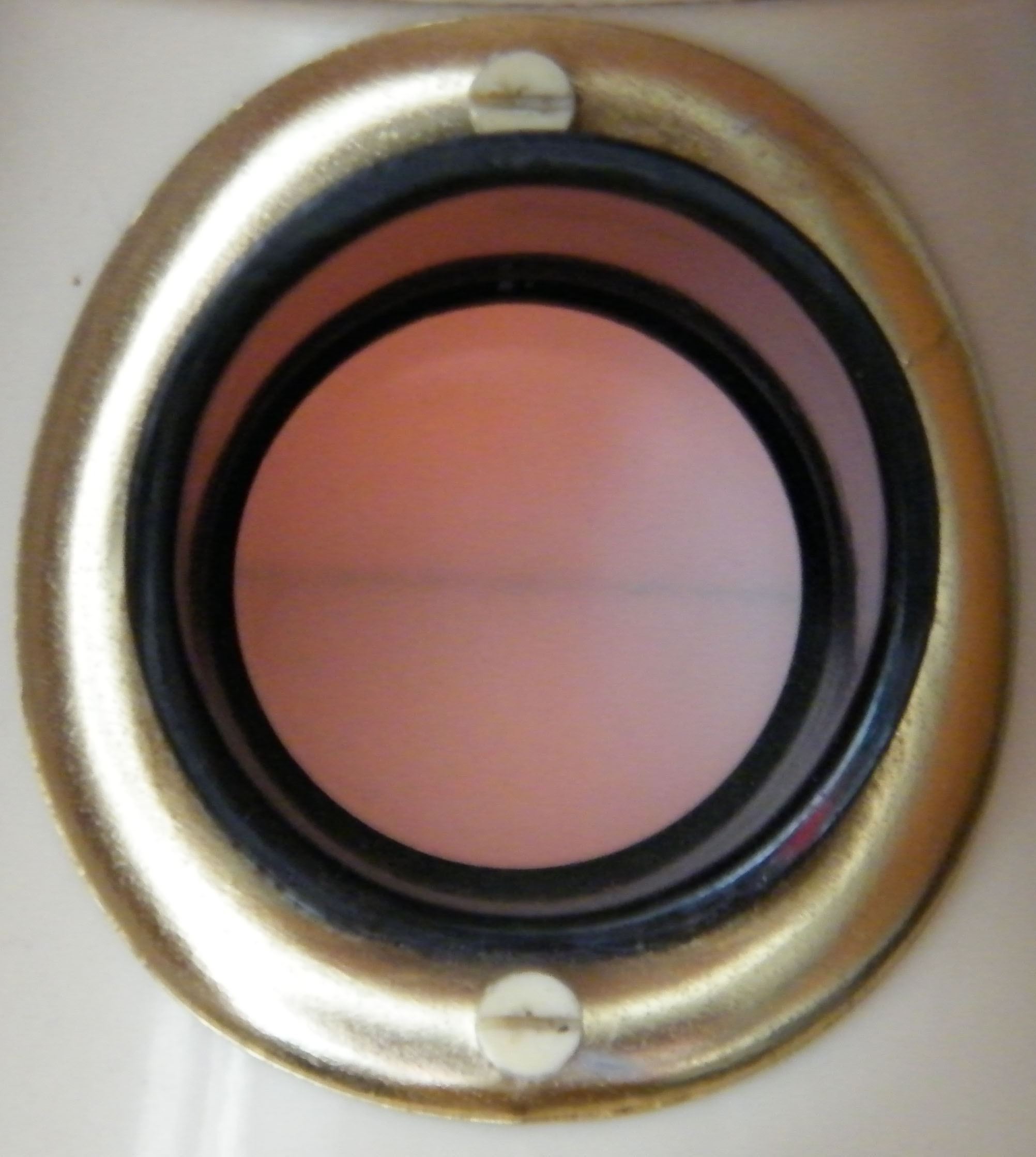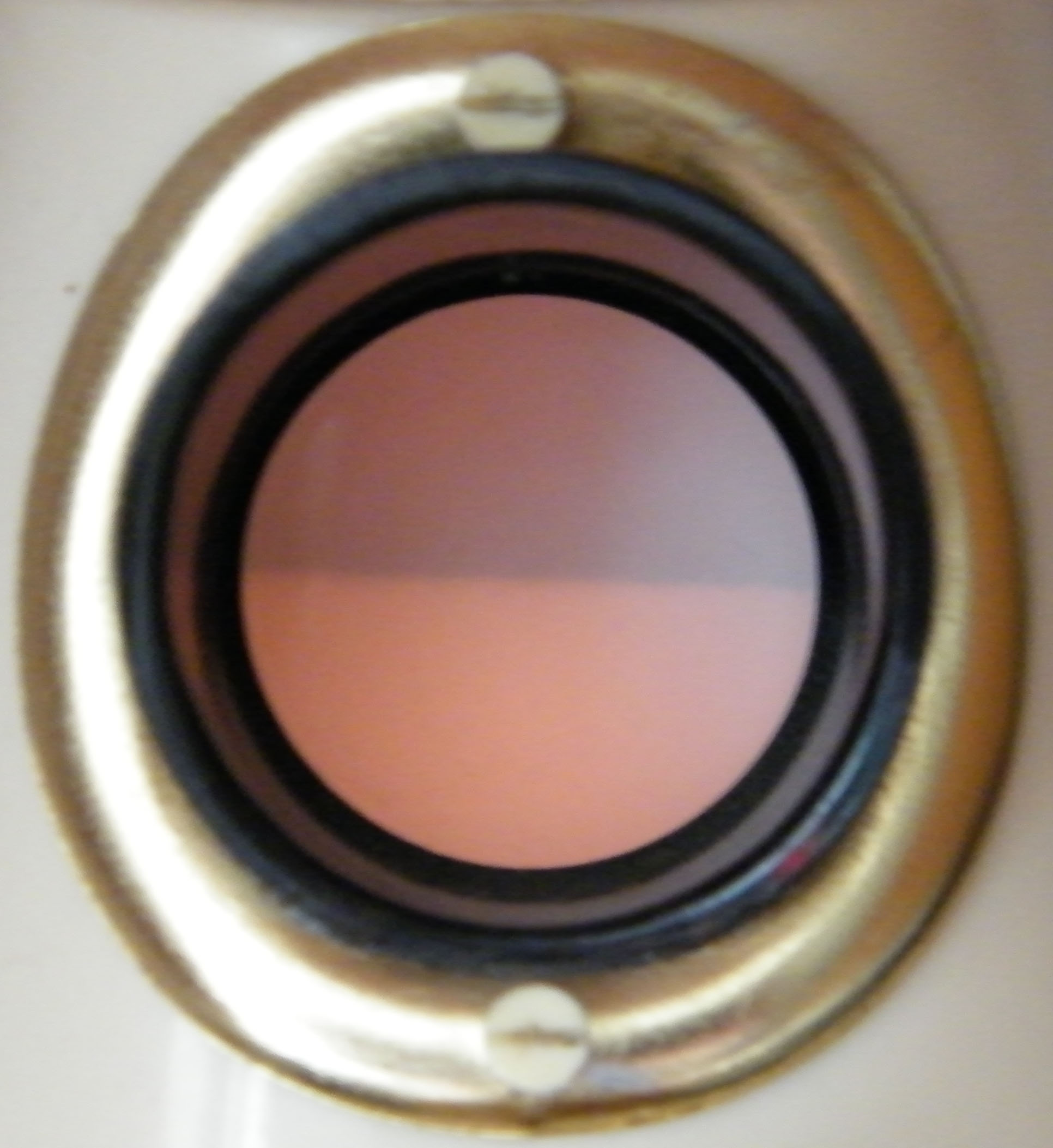 das Auge ist zweigeteilt und mit einer Streuscheibe versehen - obere Hälfte ein Birnchen und untere Hälfte das Zweite.