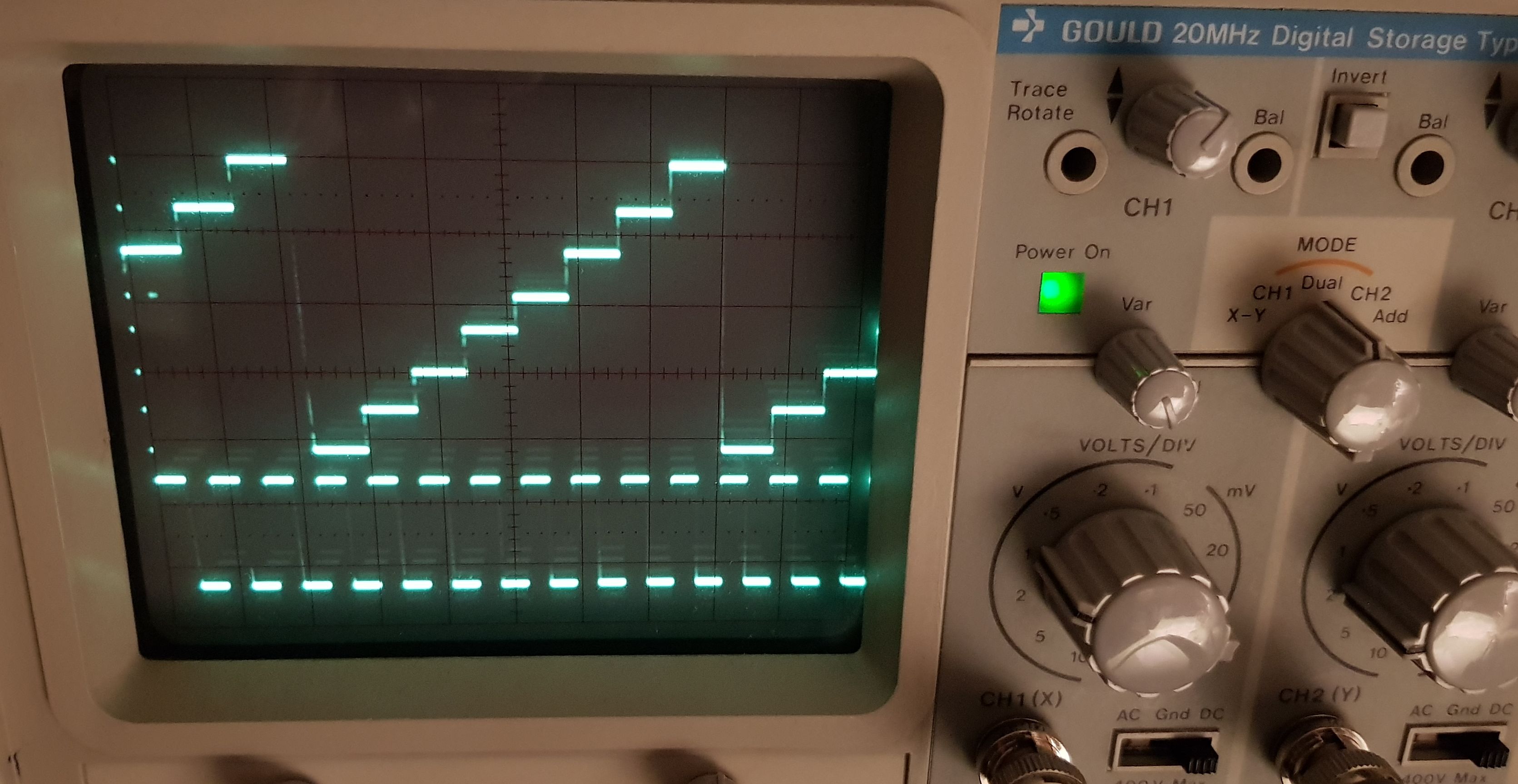 3. Das Auslösen des Treppensignals über den 100pF Kondensator am CLK-Eingang des CD4040 scheint nicht optimal zu sein. Ein Nutzer hat den Wert auf 1 nF erhöht. Ich überlege mir eine Zenerdiode zu verwenden oder einen Schmitttrigger aus zwei Transistoren.
