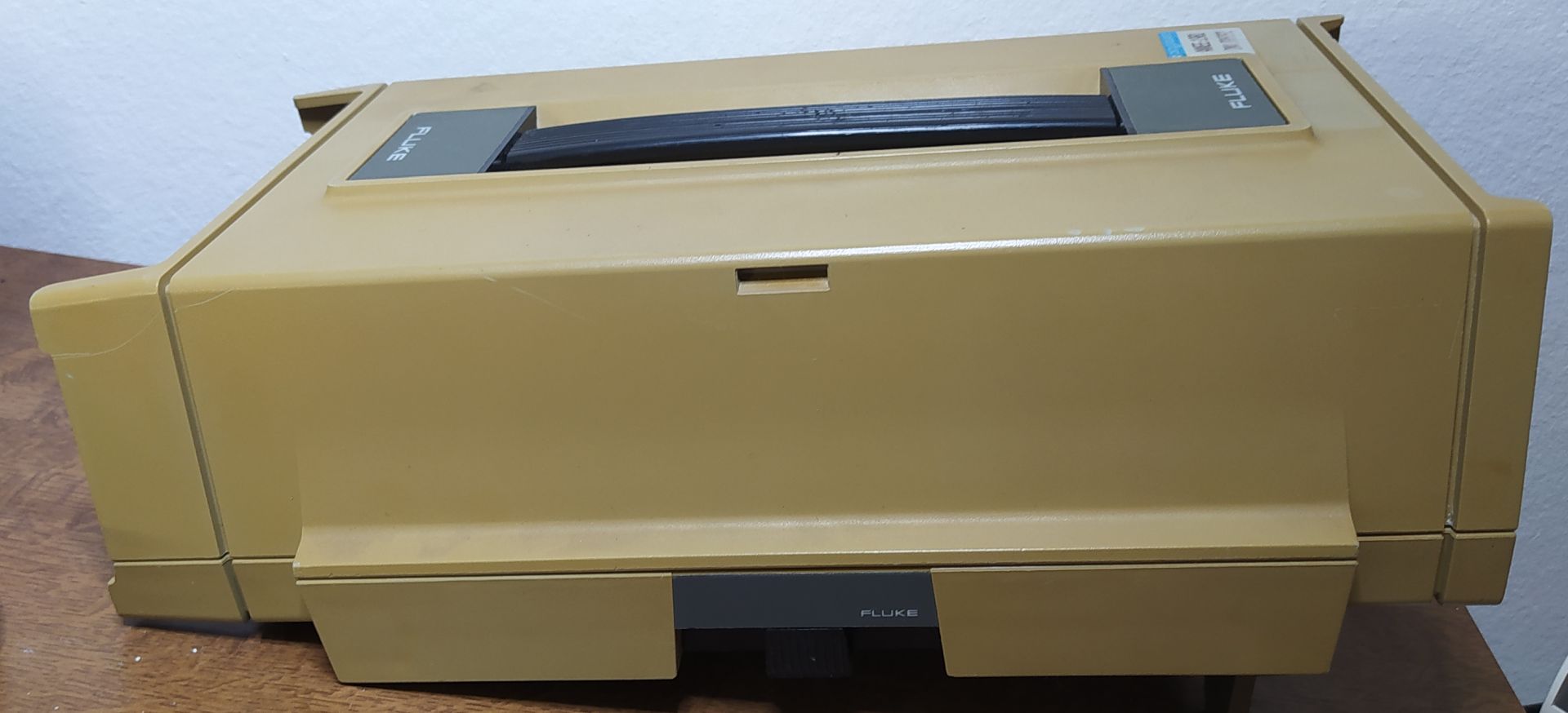 Diese Geräte gehören zu einer stapelbaren Serie von Messgeräten zum Rumschleppen, Es gab separaten Akkukasten, optionale Schnittstellenkarte für den kleinen Drucker und so einiges mehr. Dieses Exemplar hat davon nichts installiert, deswegen hinten der Deckel. Sie sehen oft ziemlich verqualmt, vergilbt aus, das Reinigen ist eine Tortur.