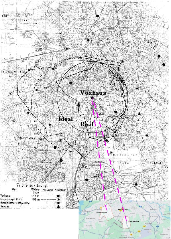 Ich habe in die Originalkarte von 1925, ganz unten, den Bereich "Mariendorf" eingefügt, ebenfalls in die moderne Karte. Die Empfangsorte liegen bei der Originalkarte also unter dem Kartenbereich.
