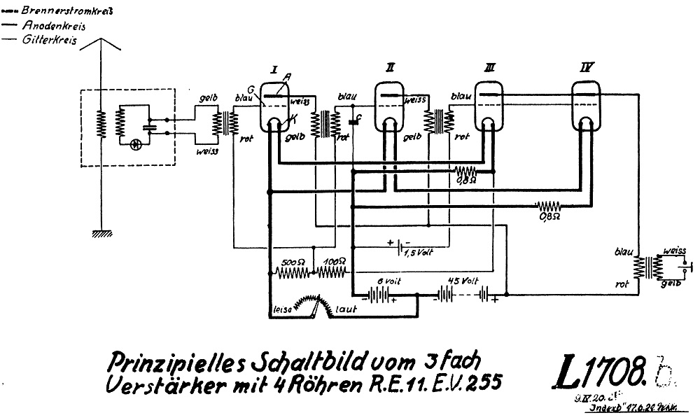 Technische Daten: Schaltung: NF-Verstärker Röhren: 4 (4 x RE 11) Lautsprecher: Kopfhörer- oder Morseschreiberanschluss Spannung: 6-Volt-Heiz-, 45-Volt-Anodenbatterie Gehäuse: Holz Gewicht: 4 kg Maße: Breite 22 cm, Höhe 18 cm, Tiefe 17 cm