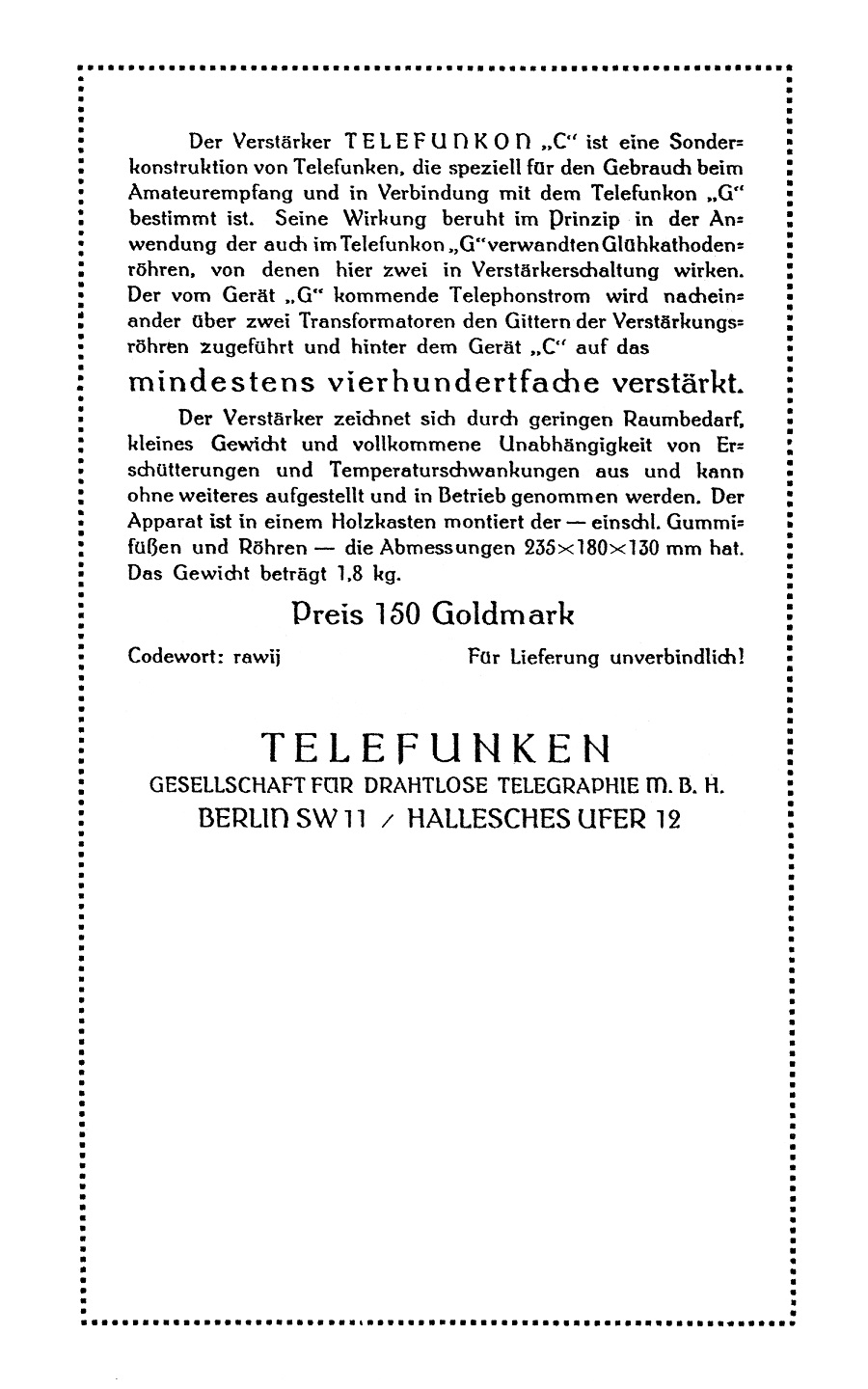 Letztens war ich auf der Radiobörse in Driebergen (NL). Dort wurde ein SIEMENS Einbereichsaudion 21G für 125 Euro angeboten. War mir noch zu teuer, hab' ich stehen lassen, weil der Verkäufer auf mein Angebot von 100 Euro nicht einging.....