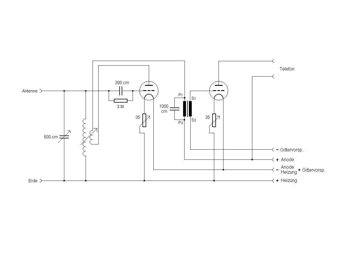 Schaltung: Geradeaus Röhren: 2 (z.B. LA 75, LA 101) Kreise: 1 Wellenbereiche: MW ca. 250-500 m Lautsprecher: Anschluss für Kopfhörer oder Verstärker Spannung: 4-Volt-Heiz-, 60-Volt-Anodenbatterie Gehäuse: Holz Skala: Zahleneinteilung 0-180 Abstimmung: direkte Drehkoabstimmung Gewicht: 2 kg Maße: Breite 21,5 cm, Höhe 27 cm, Tiefe 12 cm