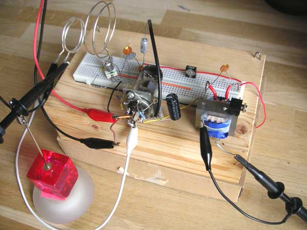 Hier noch mal der Link zum einfachsten UKW- Pendelempfänger. Hier sogar mit Anodenspannung < 50V. Die Laborsteckplatine dient nur zu Einspeisung und NF- Auskopplung.