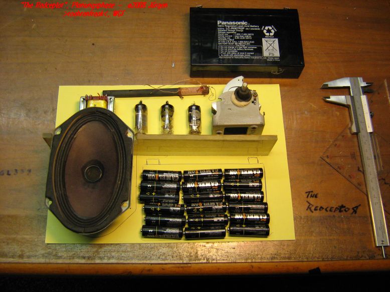erst mal "heissen Dank" für eure Kommentare. @JHG: Der Akku dient zur "Befeuerung" der drei Röhren, sprich als Heizbatterie. Er hält bei den errechneten 650mA Heizstrom etwa sieben Stunden durch, dann muß er an den Tropf zum Laden. Und weil ich keine Lust habe, ihn dafür jedesmal auszubauen wurden an der Rückseite die beiden Bananenbuchsen vorgesehen. Die 18 Mignon´s sind übrigens mit dem Akku in Reihe zusammen geschaltet. So kommen bei frischen Zellen gut 33 Volt zustande. Der Anodenstrom von zornigen vier Milliampere lässt damit sehr, sehr viele Betriebsstunden vermuten.