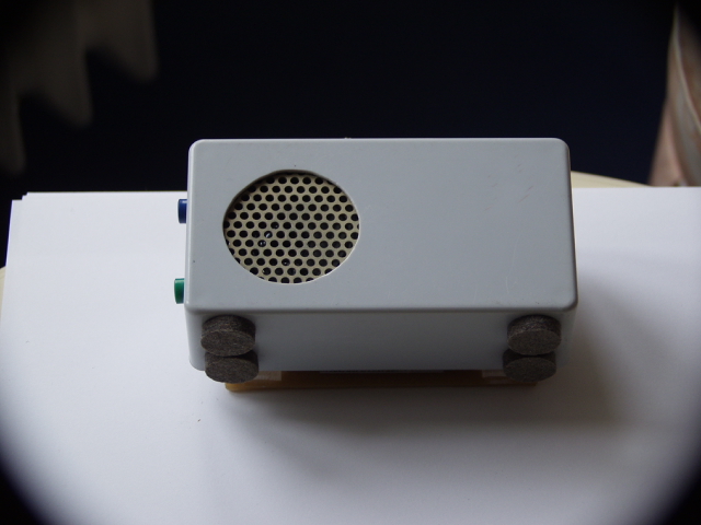 Die Bilder zeigen den Schaltplan,sowie die Teile vor und nach dem Einbau in ein Gehäuse.Als Besonderheit ist ein Aus/Einschalter,sowie ein Lautstärkeregler zu erwähnen zum Einstellen der Lautstärke.