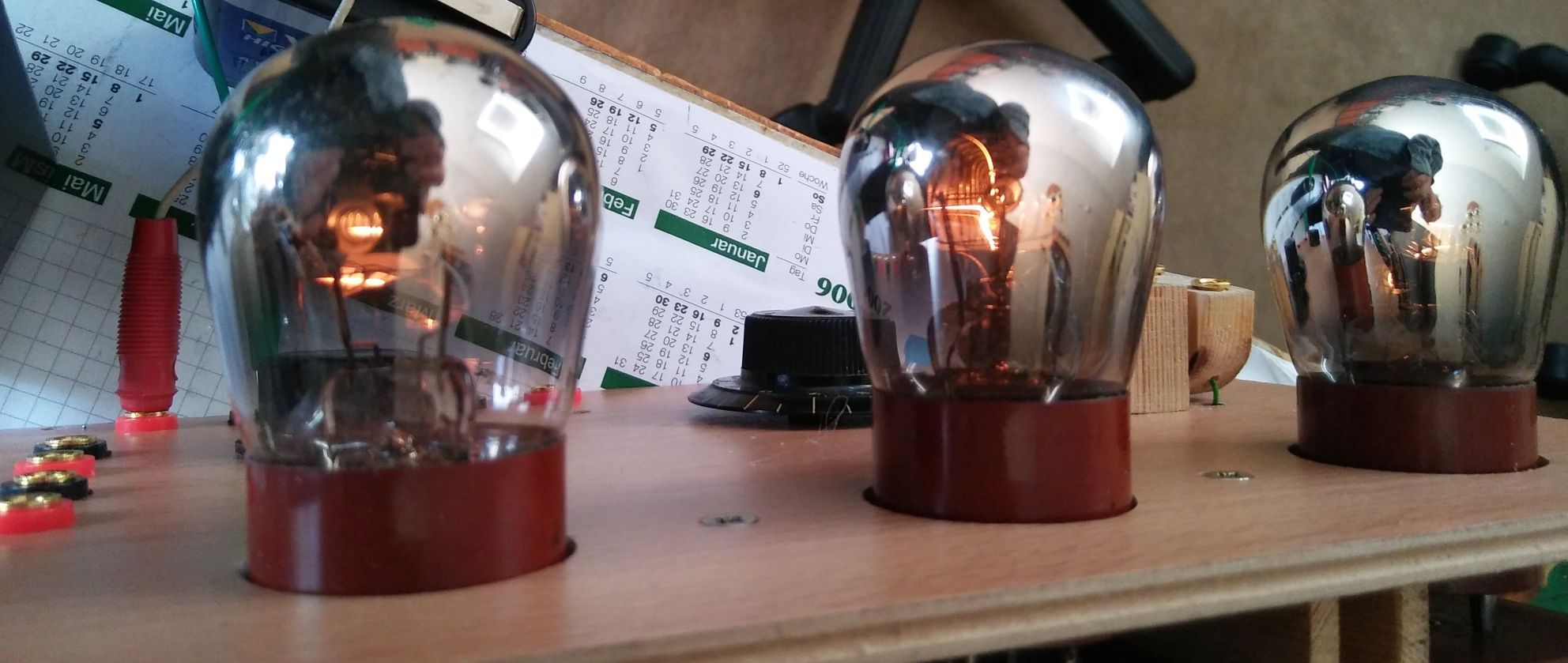 Im Bestreben den Röhren zu ihrem 100. Geburtstag eine würdige Umgebung zu spendieren, habe ich mich schon eine Weile nach alten Eigenbauten aus der damaligen Zeit umgesehen, scheiterte aber regelmässig an der mir gesetzten Preisschwelle von 100 Euro. Letztlich kommt also nur ein Neubau in Betracht, der zudem den Vorteil der vollen Experimentierfreiheit bietet. So wurden folgende Ziele abgesteckt: