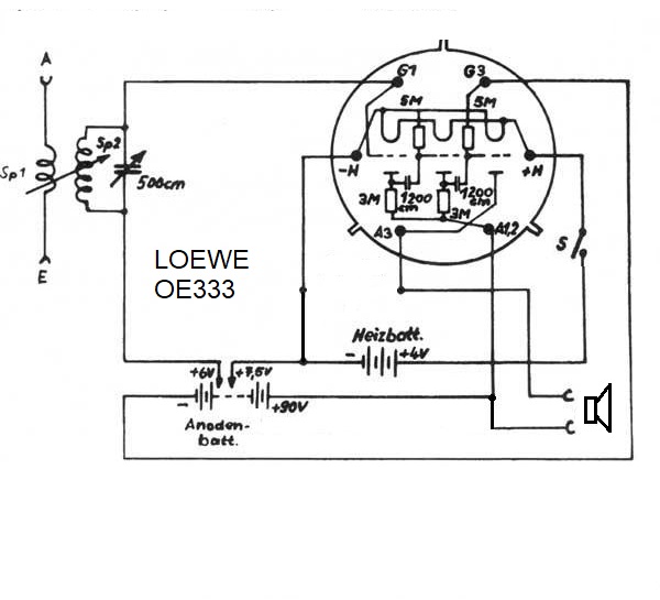 Da wären zunächst die Werte der Widerstände und Kondensatoren, welche nach Angaben von Nesper-Kunze (von 1928) original verbaut wurden. Diese sind in diesem Schaltbild übernommen worden.