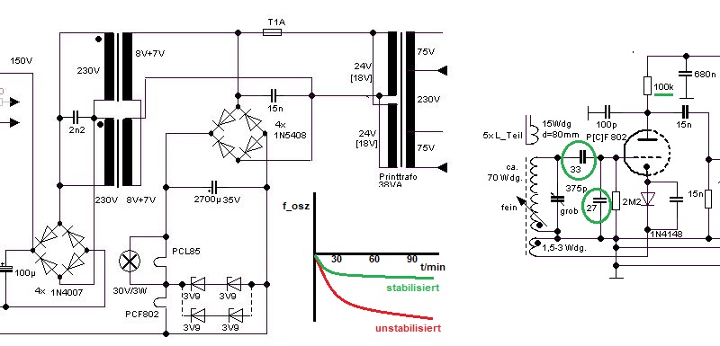 Aber es ist unkomfortabel, ständig die Frequenz nachjustieren zu müssen, wenn sich die Schwingkreise erwärmen oder der Trafo: Die Empfangsfrequenz eiert weg und das Gejaule geht los.