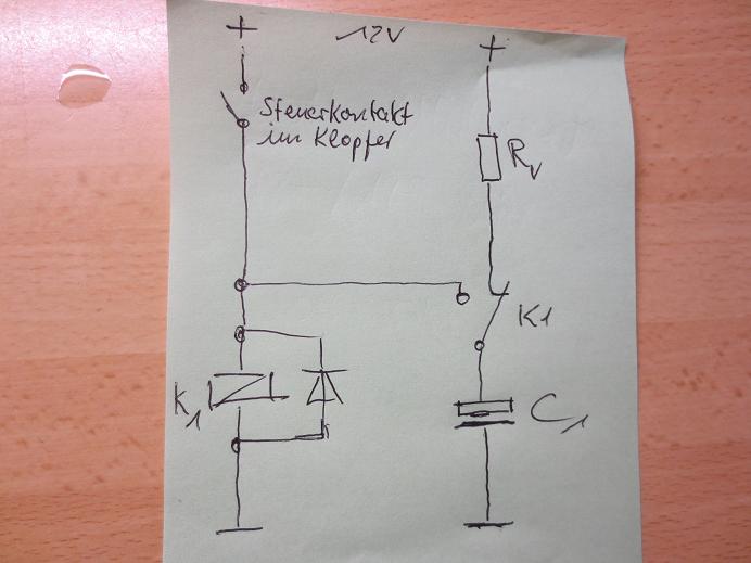 Allerdings steigt dann je nach Entladung des C's die Belastung des Klopfersteuerkontakts. Also wahrscheinlich gehuppft wie gesprungen...