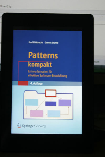 Die Webseite zum Buch: http://www.patterns-kompakt.de/ Ein "Blick ins Buch" ist bei Amazon möglich, wer einen Leseausweis einer Universitätsbibliothek hat, kann das Buch in der Regel kostenlos als PDF über den OPAC-Katalog downloaden.