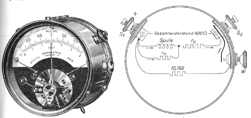 Ich hatte mich an den tragbaren Messinstrumenten der Reichspost orientiert. Hier sind die Messbereiche so wie in der obigen Tabelle eingeteilt. Die Abbildung eines solchen Gerätes G3 von vor 1907.