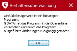 Das Programm Win32DiskImager wurde von GDATA als "bösartiges" Programm bezeichnet und automatisch in die Quarantäne geschickt.