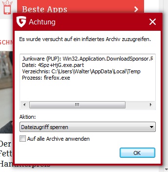 Interessanterweise schritt die Virenschutzsoftware erst beim Start des Kopierprozesses der Datei