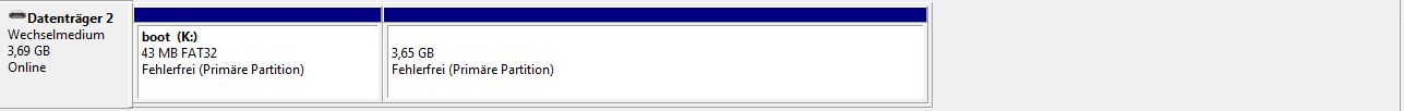 Partition 2 kann ein Windowsnutzer im Gegensatz zu einem Linux oder Mac-Nutzer ohne weitere Mittel nicht öffnen, Windows erkennt die SD-Karte nämlich so:
