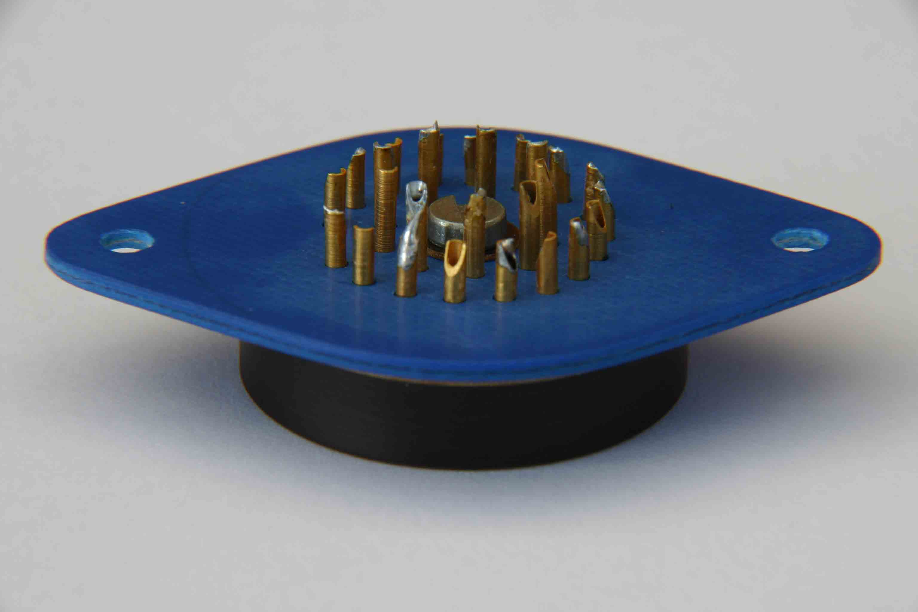 ja, beim Verdrahten von Fassungen für Glassockelröhen (aber auch bei anderen Sockeltypen nie verkehrt) immer ein Röhrenphantom oder auch eine mittels Röhrenstiftausrichter justierte defekte Röhre (niemals eine gute Röhre , da könnte der Glassockel durch thermische Spannungen reißen) reinstecken.