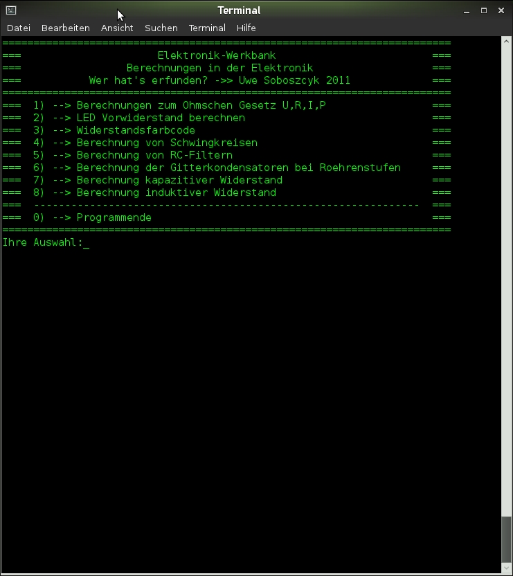 ich bin schwer am "büffeln" und strenge mich mächtig an, den Ansprüchen gerecht zu werden. Damit möglichst alles hängen bleibt, wird ein kleiner "Werkzeugkasten" für Linux programmiert, damit man später alles "griffbereit" hat. Mal sehen, wie weit ich damit komme. Sieht vielleicht etwas altertümlich aus, ist dafür aber "einhand-bedienbar" Im Bild seht ihr, womit ich mich beschäftigt habe.