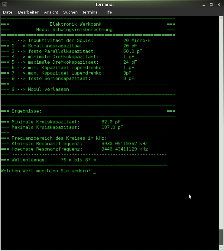 Kleiner Auszug aus dem Berechnungsprogramm für den Schwingkreis: