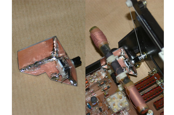 2. Ist das Digitalteil räumlich fertig aufgebaut, so nimmt man dünnes Weißblech, kanntet passend ab und verlötet dieses "Häubchen" mit der Arbeitsplattform, in dem Fall der Leiterplatte. An der Leiterplatte erfolgt dann an einer Stelle eine solide Verbindung mit der Schaltungsmasse des Analogteils, ich nehme hierzu immer breite (schon benutzte) Entlötlitze - eine wunderbare Art der Wiederverwendung(!). HF-Leitungen (für DAB oder 2.4 GHz) sind über geschirmte Leitungen auf die Rückseite zu legen. Der Anschluß externer Antennen für Wifi/Bluetooth am Raspberry ist kein Problem und mit etwas Übung leicht beherrschbar. Durchführungen für Busleitungen entweder minimal halten (reicht in der Regel aus) oder über eine HF-taugliche Stecker/Buchsenlösung nach außen führen (Luxusausführung).