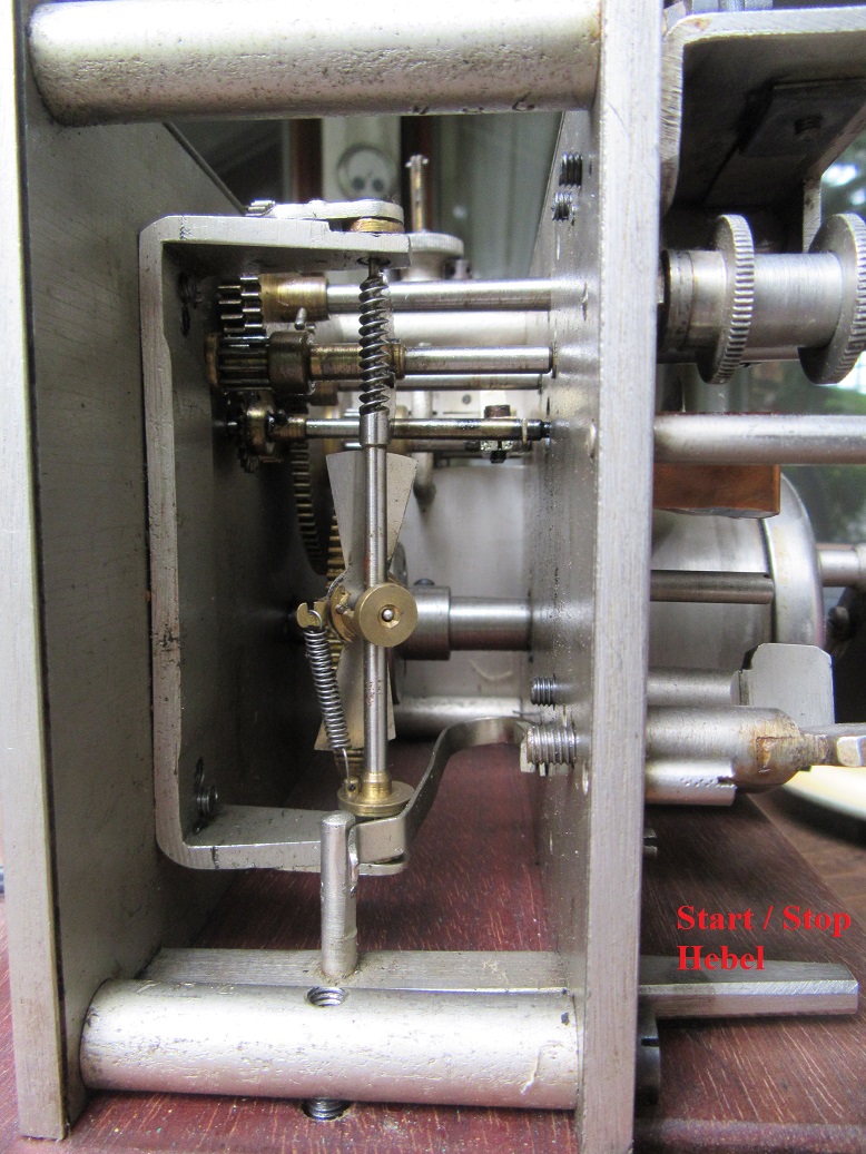Seitenansicht mit Start / Stop Mechanismus vor Demontage der Rückwand: