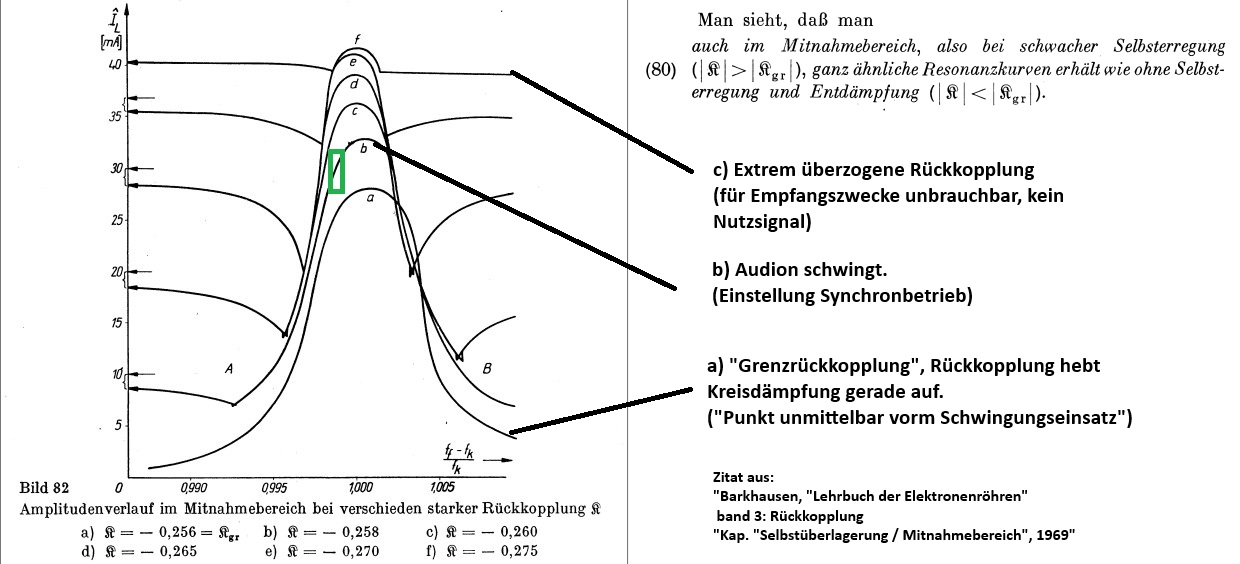 Mit der Entdämpfung des Audion-Resonanzkreises lässt sich schon mal die gute Selektionswirkung des Audions erklären. Der Synchronempfänger verhält sich da genauso, wenn er nicht zu weit rückgekoppelt wird.
