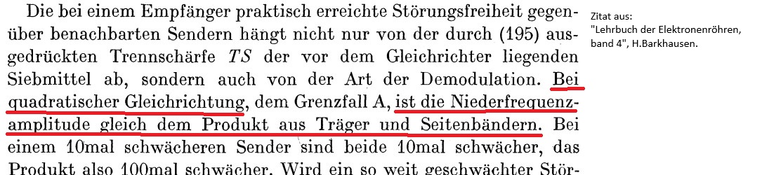 Ein weiterer Punkt wird in dem Funkschau-Artikel 1950/Heft 1 über Synchron-Empfang besprochen: Die Art der Demodulation hat auch Einfluss auf die Trennschärfe des Empfängers. In der genannten Referenzquelle liest sich das so: