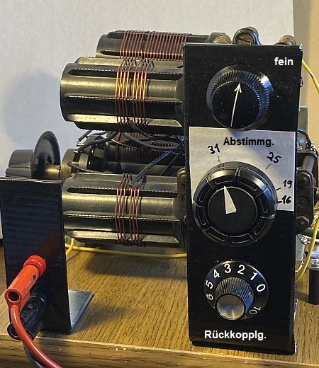 Das Millereffekt-Audion wurde 1915 von Armstrong vorgestellt, das Nestel-Audion 1935 von Nestel. Beide Audion-Varianten in einer Schaltung habe ich noch nicht gesehen, vielleicht ist das neu. Das Audion hat einen harten Schwingungseinsatz. Weil das Audion im Autodyne Betrieb arbeitet, d.h. das Audion oszilliert, ist der harte Schwingungseinsatz nicht so schlimm. Während ich diesen Artikel schreibe höre ich das 16m Band ab. Die Trennschärfe ist schlecht. Aufgrund von Fading sind nacheinender oder auch gleichzeitig verschiedene Sender des 16m Band hörbar. Manchmal ist auch nur Rauschen und atmosphärisches Knacken zu hören. Bei guter Einstellung gibt es kein Rückkopplungs-Pfeifen und auch kein Knattern (motorboating).