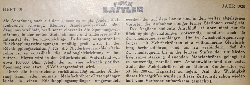 die +1,5 V Gittervorspannung für die erste Triode im Audionbetrieb mit Rückkopplung wurde schon 1928 von Manfred v. Ardenne vorgeschlagen, siehe Anlage (leider nicht schöner vorhanden; Sammel-pdf ging nicht).