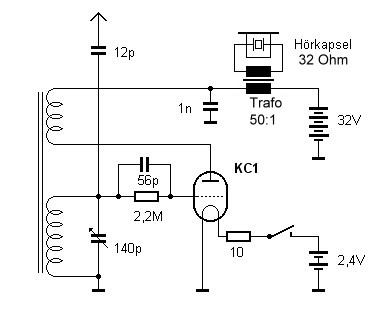 Guten Tag Nein die Röhre hat noch Durchgang. Heizspanung wird sofort gleichgerichtet. Aber warum ist Wechselstrom bei diesem Röhrentyp verderblich? Und noch Etwas das ich nicht verstehe. Statt des Ohrhörers möchte ich meinen 32 Ohm Köpfhörer benutzen. Ein Übertrager mit der Primärseite an 32 oder 40 V Plus der Gleichspannung anschliessen. Wie soll das funktionieren? Gleichstron kann ich doch nicht transformieren. Oder was sehe ich falsch.