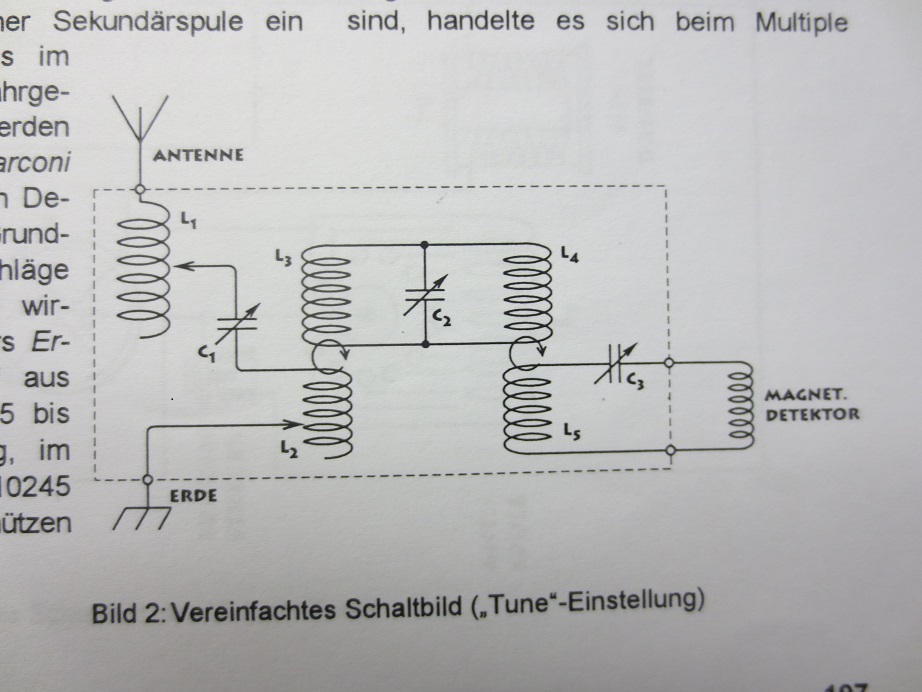 Für einen möglichen Endausbau muss nun die Untersuchung der besten Empfangsfrequenz beginnen. Zur Zt. liegt die im Bereich um 1Mhz. Ich will auf jeden Fall eine 60cm Rahmenspule einsetzen. Das hat den Vorteil, dass im Nahbereich keine Antenne/Erde gebraucht wird, aber trotzdem diese Anschlüsse bei Bedarf aktiviert werden können. Es soll ein Zweikreiser werden. Zwei induktiv gekoppelte Rahmen. Oder soll ich lieber gleich diesen bewährten Marconi- Empfänger aufbauen?