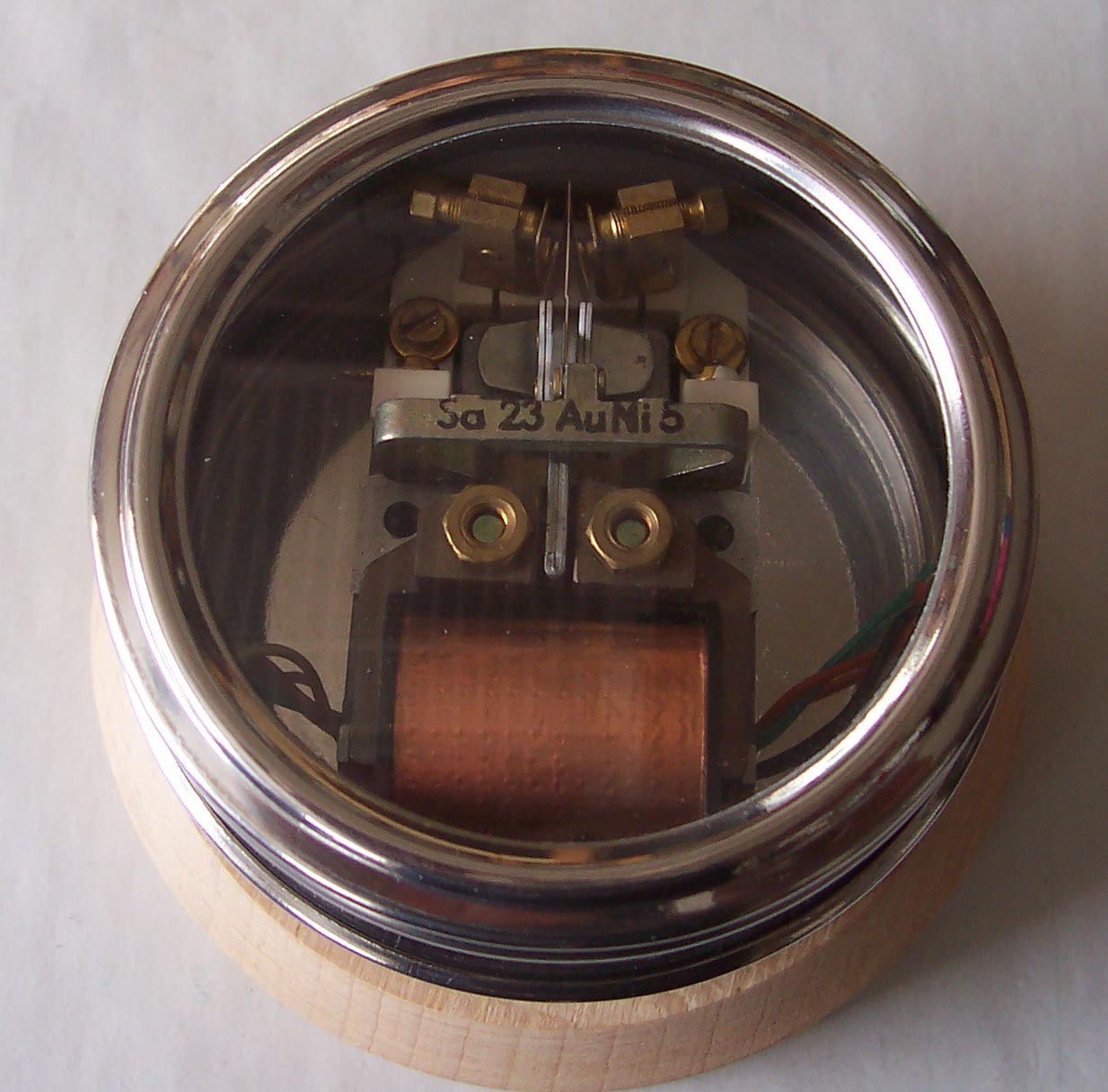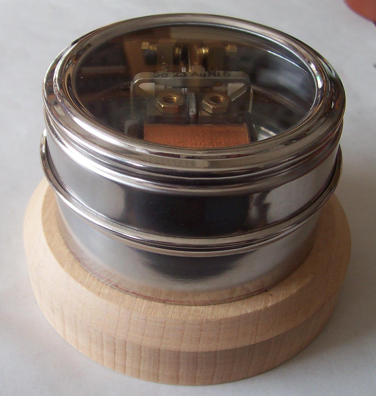Ich will bei meinem Aufbau eher die Funktionalität im Vordergrund sehen und schrecke deswegen nicht vor modernen Materialien, Makrolon, Kunststoffe aller Art usw. zurück. Der Siliziumfreie Aufbau liegt mir aber auch am Herzen. Ich sehe nun schon neben Deiner Blechdosenabschirmung eine etwas kleinere Aluminiumzelle stehen. Das wird dann ein echtes Schmuckstück. Schön wäre es allerdings die Kontakte sichtbar zu haben. Die sind nämlich sehr schön und zeigen gleichzeitig die Funkion an. Ich schalte z.Zt. etwa 12V/ 50mA über den Kontakt. Die Auswirkung der Klopfer- Gegeninduktion ist eigentlich nicht wirklich untersucht. Abschirmungen und Beschaltungen sind aber auf jeden Fall notwendig. Wo, wie usw.....bleibt noch zu erkunden.