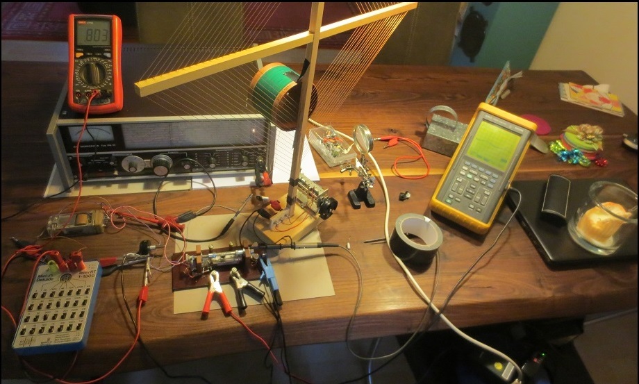 Ich freue mich...dass ich nun einfach am Basteltisch experimentieren kann. Der Aufwand mit Funkenoszillator wäre recht hoch und im Nahbereich wegen dem Streufeld der Funkenstrecke unmöglich. Geht...aber man muss viel hin und her rennen.