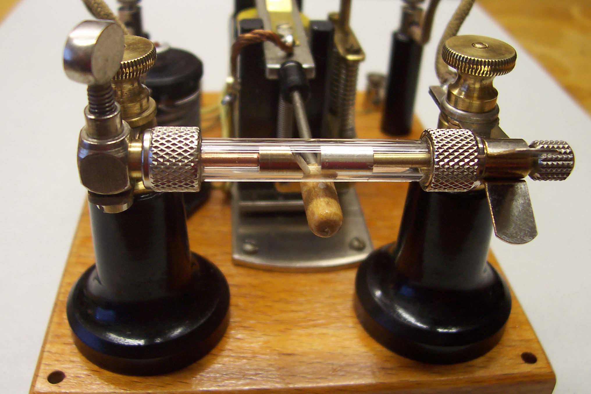3. Ich habe nochmals die USA- Replik untersucht und musste feststellen, dass die Elektrodenstrecke für den richtigen Fernempfang einfach zu groß ist. Sie liegt im unteren Bereich bei ca. 2mm. Das ist zu viel für den Funken- HF- Fanatiker. 30-60V sind damit max. zu detektieren. Eine mannschaftsdienliche Einstellung um Marconi nachzuempfinden.