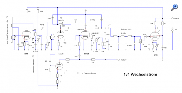 es gibt sicher noch einige Möglichkeiten das was zu probieren. Ich lasse mich immer von der Überlegung leiten, die Selektion so weit wie möglich nach vorne zu legen. Deshalb behagt mir der Gedanke einer komplett aperiodischen Vorstufe nicht wirklich. Das ganze Spektrum wirkt ungefiltert auf die Mischstufe bzw. das Audion. Auch bin ich mir nicht sicher wie sich das auf die Rauschbilanz auswirkt. Auch wenn sie hier praktisch keine Verstärkung liefert und nur den Antenneneinfluß mindern soll. Hab allerdings schon Schaltungsvorschläge gesehen, bei denen vor die HF-Stufe eine aperiodische Stufe geschaltet wurde, um den Antenneneinfluß auf den Eingangskreis auszuschalten. Damit soll eine gut funktionierende Einknopfabstimmung möglich sein. Aber das erreicht man auch mit dem sogenannten Bandfilter-Zweikreiser bei weit weniger Aufwand.