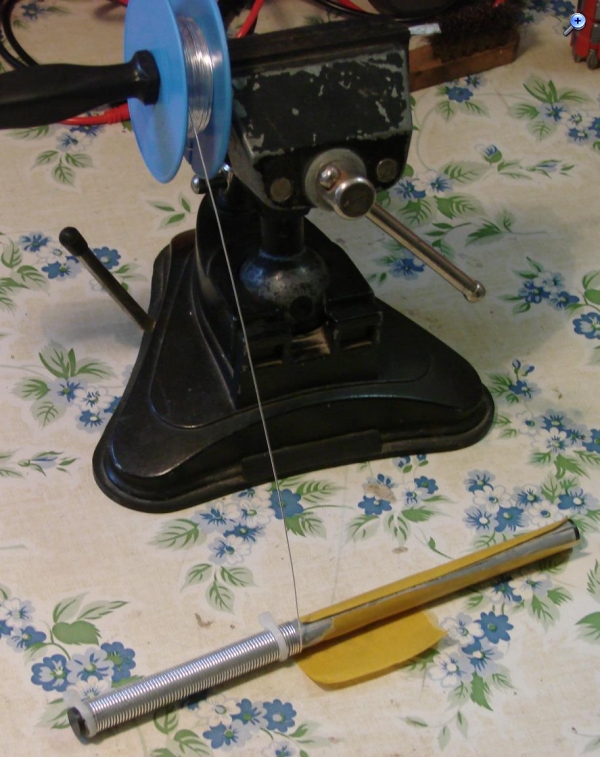 Vorne am Spulensatz-Ständer sieht man den lose klappernden Quetscher