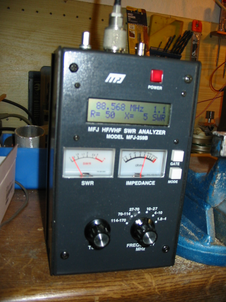 meine "Bandbreitenwelt" ist wieder in Ordnung. Die Herstellerangabe von Cte Broadcast erschien mir zu optimistisch, wie eine SWR- und Impedanzmessung heute vormittag zeigte. Allerdings muss man meinen Indoorbetrieb berücksichtigen. Am Mast montiert steigen die Resonanz-Mittelfrequenzen in der Regel um ein paar MHz an. Ausserdem erhöht eine Vormastmontage tendentiell die Bandbreite. Die gezeigte Antenne soll in vertikaler Polarisatiion in Vormastmontage betrieben werden. Ich habe sie so in den Schraubstock gespannt, dass sie horizontal polarisiert war. Ich kam bei meinen "Messungen" mit dem MFJ-259B ("Most famous junk") auf eine praktisch nutzbare (Sende-!) Bandbreite von etwa 10 MHz. Als reine Empfangantenne dürfte sie über 30-40MHz gut spielen.