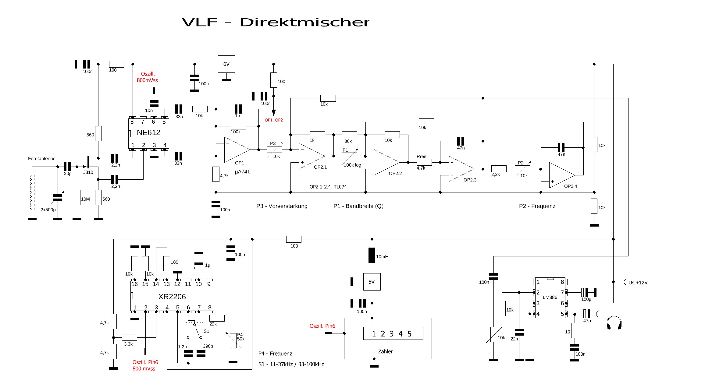 Mir fällt auf, dass Du den passiven 3kHz-Tiefpass am Ausgang des NE612 eingespart hast. Den hätte ich vielleicht drin gelassen und Abstriche in der Filterung gemacht. OK, das Filter war noch vorhanden... Grosses Erstaunen löste bei mir der Einsatz des XR2206 aus, den es tatsächlich für 5€ noch zu kaufen gibt.