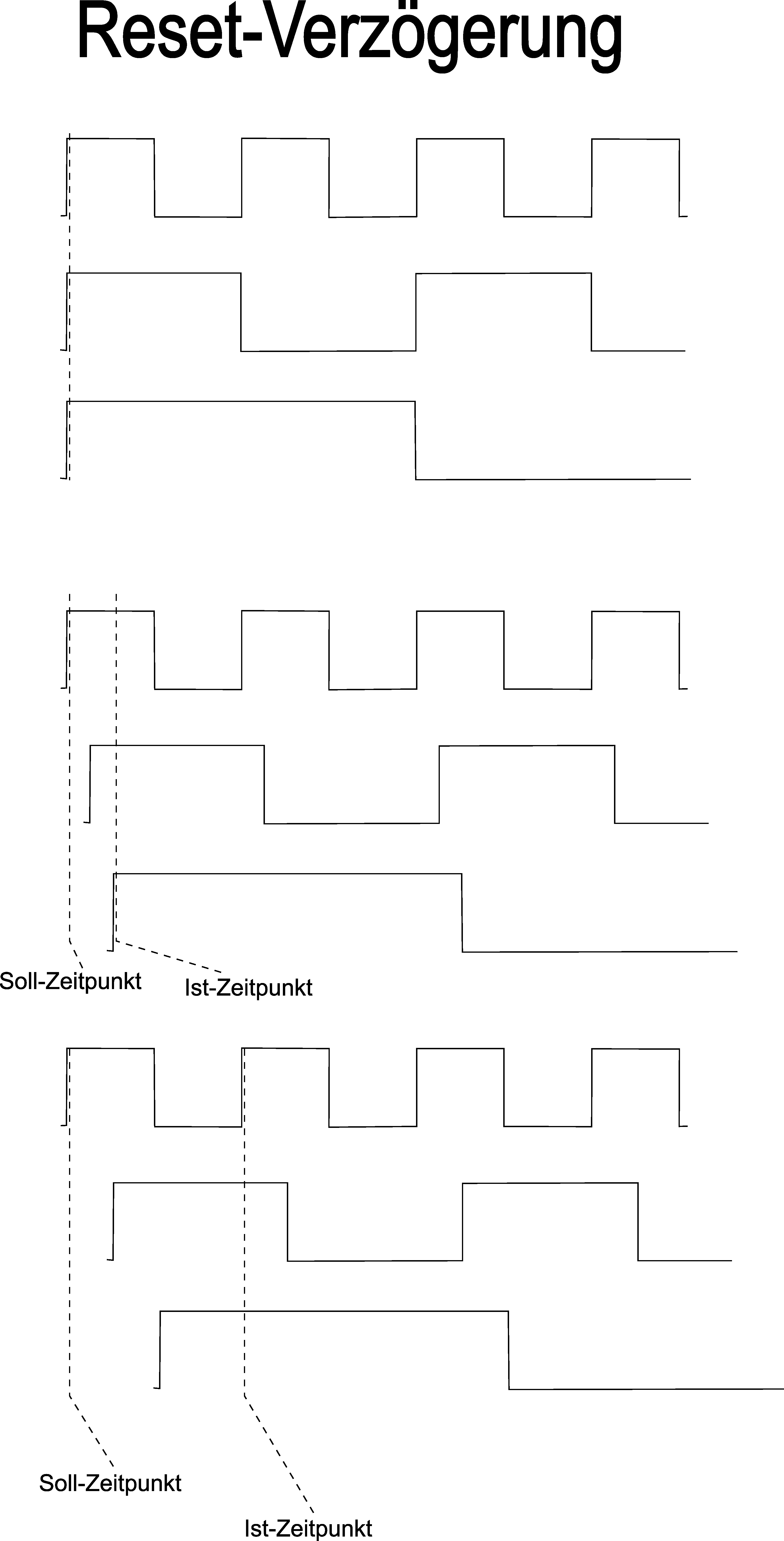 Zur Veranschaulichung habe ich noch ein Bild gebastelt, aus dem hervorgehen soll, wie durch die zeitliche Verschiebung unter den Flipflops die "Gleichzeitigkeit" der H-Stati verlorengeht und somit der Reset-Start im Extremfall um einen Takt verschoben wird.