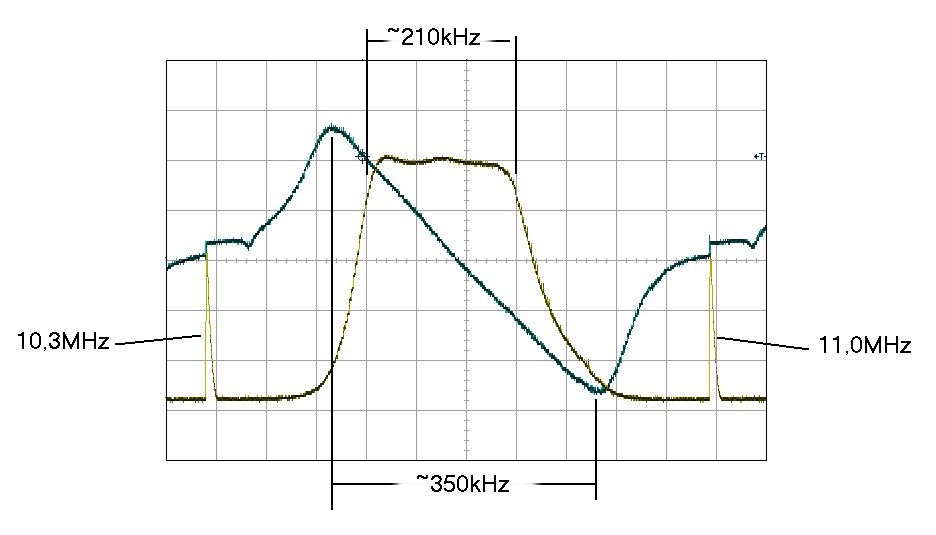 Hallo zusammen, wie bereits angekündigt habe ich jetzt Tuner und ZF-Vertärker, den ich einer umfangreichen Überarbeitung unterzogen habe, gemeinsam auf einer Platte aus Platinenmaterial montiert - das Radio funktioniert. Auf früheren Oszilloskopdarstellungen ist zu erkennen, dass Bandbreite des ZF-Verstärkers und Höckerabstand des Ratiodetektors für eine "satte" NF-Wiedergabe nicht ausreichend waren, von Stereoempfang ganz zu schweigen. Daher habe ich die Kopplung der Bandfilter und des Ratiodektors massiv erhöht und das vorhandene Keramikfilter gegen ein breitbandigeres Filter getauscht. Die Übertragungskurven des geänderten ZF-Verstärkers lassen seine "Stereotauglichkeit" erkennen. Im NF-Spektrum ist der Pilotton mit ausreichender Amplitude vorhanden.