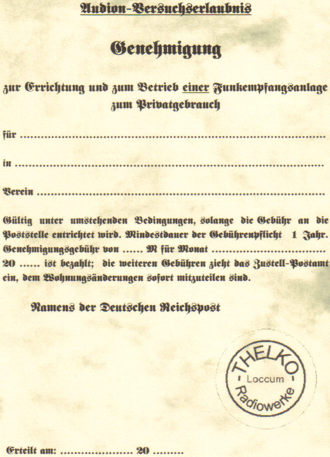 fein...ich freue mich auch das es so schnell geklappt hat. Übrigens habe ich von der Audionerlaubnis erfahren, als ich mich mich mich mit den Büchern von Hanns Günther und Hans Vatter beschäftigt habe. Ich habe mich immer wieder gefragt wie so eine Erlaubnis wohl aussieht..