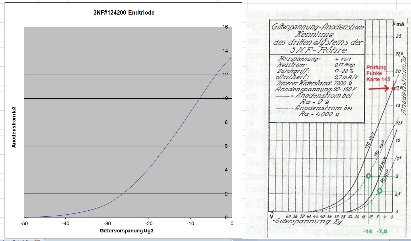 Ausnahmen bestätigen die Regel. Die 3NF #124200 (einige Beiträge tiefer) hatte tatsächlich eine Emission > 75% - ein Glücksfall für den Besitzer. Leider gehört die Röhre nicht mir und ist schon wieder auf dem Weg nach Frankreich. Immerhin ist mit der Kryska Replique 3NFBat kurz vor dem Rückkopplungseinsatz in der Tagesdämpfung Orfordness 648 kHz einwandfrei hörbar (Ua=125V).