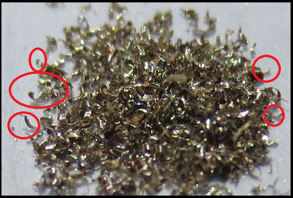 Durch Bewegung und Stauchung verändern sich die Späne. Bei Elektrodenabstand von wenigen 1/10tel mm ist die längliche Form nicht von Vorteil. Bei höheren HF Amplituden aber kein Problem.