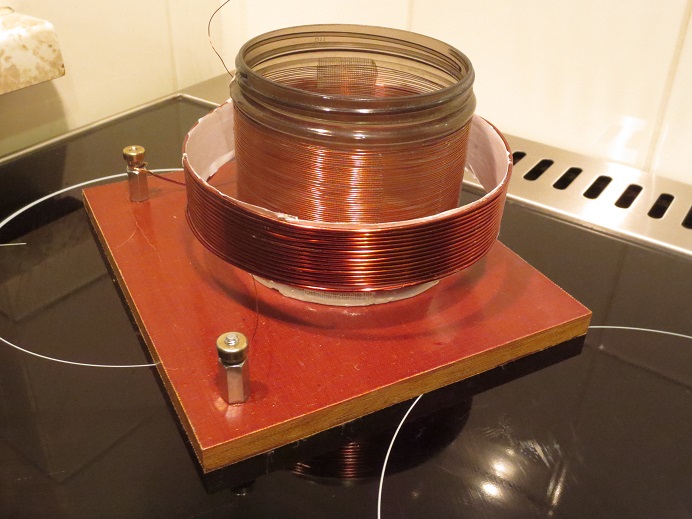 Hier das improvisierte Spulenkonstrukt zum Versuch .