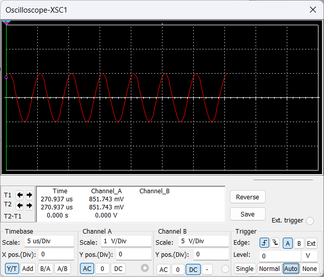 Das folgende Bild ist von der Simulation und zeigt die Spannung am Schwingkreis: