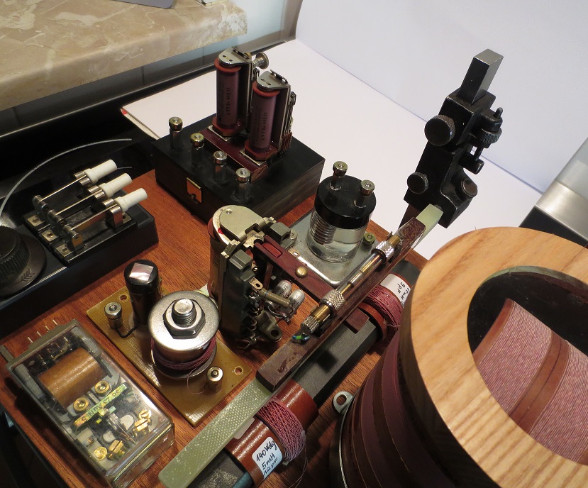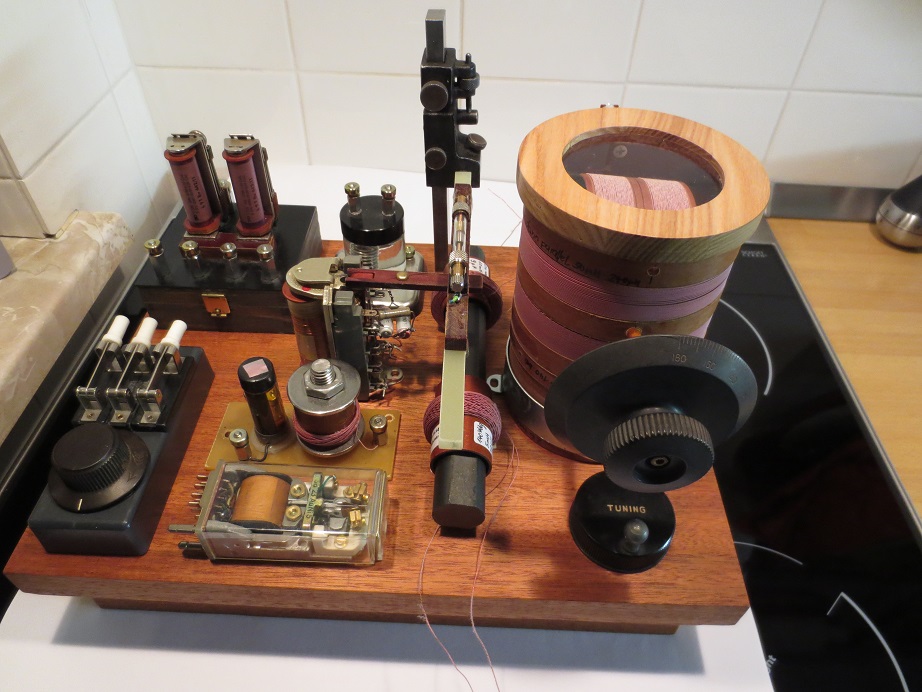 Hallo Mark, ja prima sieht das schon aus. Wirkt auf jeden Fall sehr authentisch. Die Idee mit dem alten Amperemeter zur Anzeige des Batteriestroms gefällt mir. Gab es da nicht ein Problem mit der Anzeige, bedingt durch die Pulsfrequenz, oder zeigt es dir jetzt den Effektivwert in etwa an? Der Deckel der Induktorspule ist dir perfekt gelungen, das wird richtig was her machen. Vielleicht schäle ich meine Taste auch noch, obwohl mir diese, mit nur abgeschraubten Deckel und schwarzer Grundplatte, auch sehr gut gefällt. Zu den zwei Potis des Zerhackers noch ein Hinweis. Die Pulsbreitenregelung der verwendeten Schaltung ist abhängig von der Taktfrequenz. Das ist der Grund, warum ich meinen Induktor, nach außen, nur mit einem Poti ausgestattet habe. Pulsbreite fest auf Vollausschlag und Taktfrequenz variabel. Für das pol. Relais suche ich auch noch etwas Passendes. Deine Idee finde ich sehr gut. Ich habe nicht so viel Platz und werde deswegen eine Einhausung aus Kupferblech vorsehen. Hast Du denn mit dem Relais schon gespielt bzw. den gesamten Empfänger schon mal improvisiert vor dem Einbau getestet? (Freiluftverdrahtung).