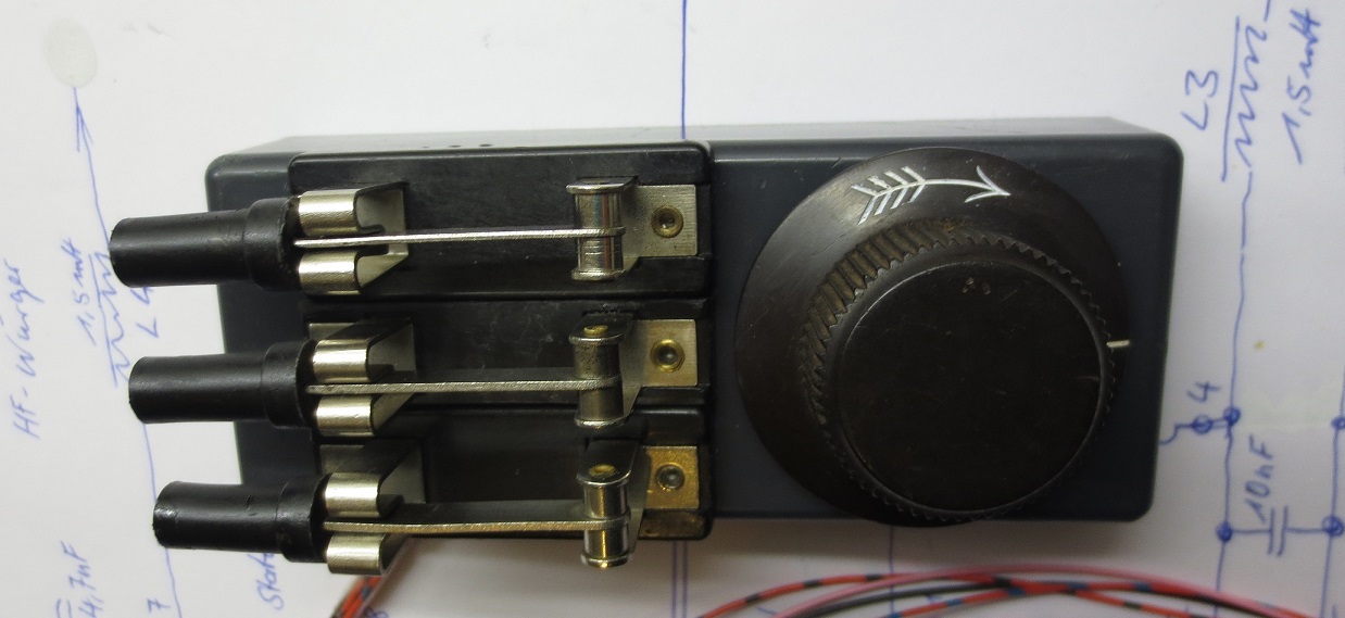 zur weiteren Unterhaltung hier meine fertige Spannungsverteilung außen und innen. Die Drähte sieht man nicht, da diese über ein Durchgangsloch in das Innere verschwinden und dort auf eine weitere Verteilerklemme aufgelegt sind. Der Draht zur Vormagnetisierung fehlt noch. Die Farbcodes sind notiert, sodass ich dort nur noch die Komponenten verbinden muss. Die Auffrischungen der Drehknopfbeschriftungen sind mit einem weißen Lackstift erfolgt. Etwas antrocknen lassen und dann mit Feuerzeugbenzin die Drehknöpfe leicht abwischen. Dann mit einem glatten Baumwolllappen die Reste von den glatten Flächen des jeweiligen Drehknopfes entfernen. Nun geht es an das Variometer....eine echte Herausforderung...aber der Plan steht.